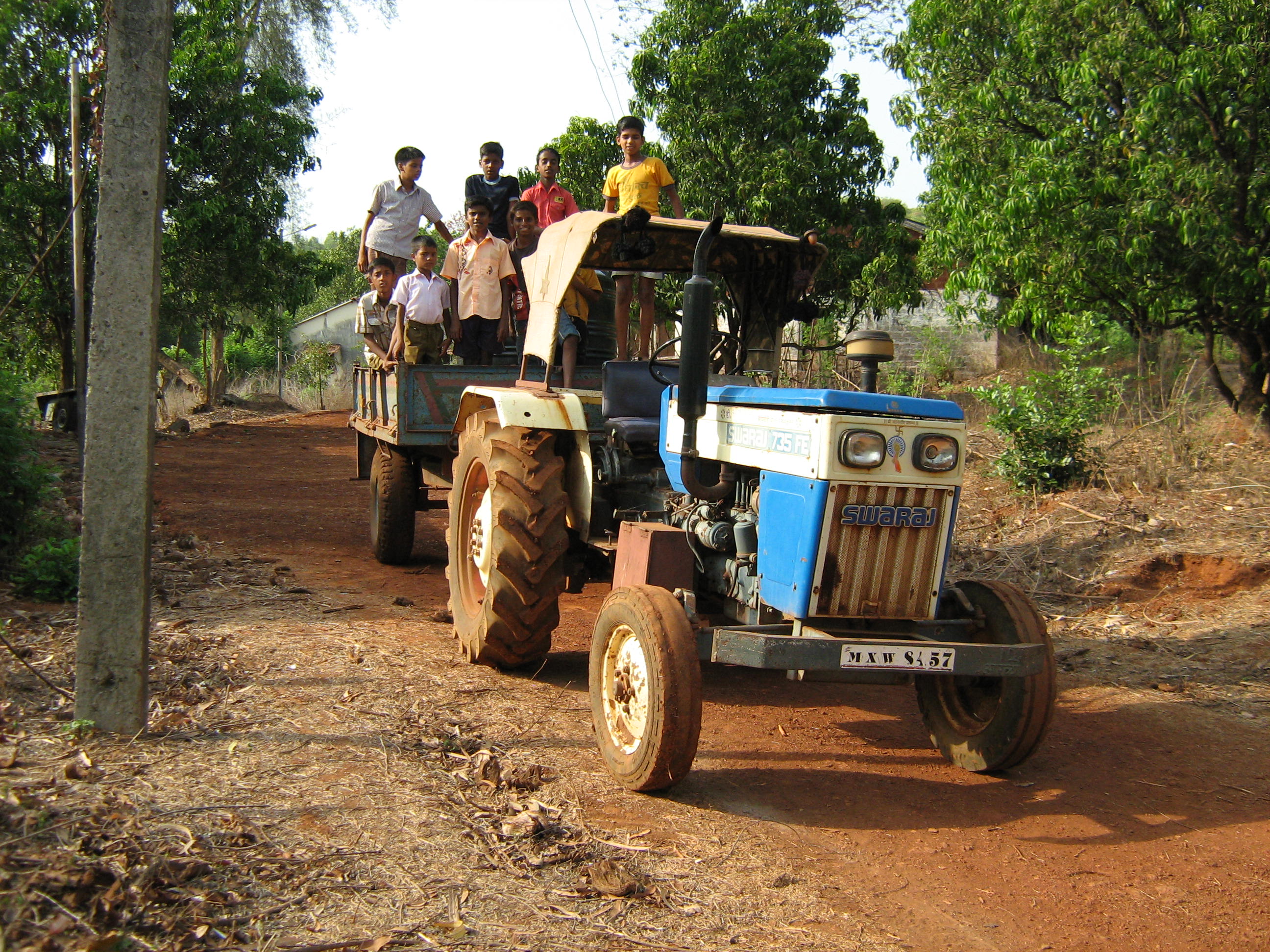 Children hitching a ride on tractor-trailer inside Gurukul Technical Details Camera: Canon PowerShot A460 Taken: May 9, 2013 Focal length: 5mm Aperture: f/2 Exposure: 1/500 second ISO: 80