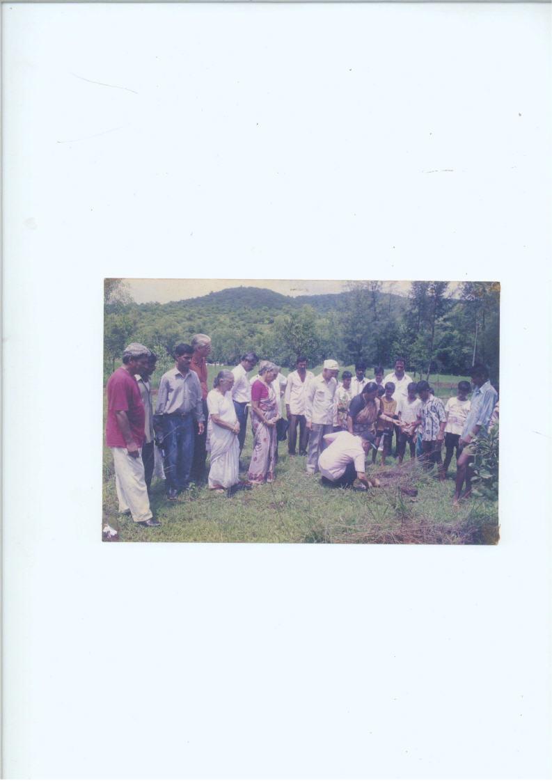 Dr Thakur performing the Bhoomi Pujan of Hostel Bal Sadan I.Miss Kumudtai Rege and Mrs Thakur behind Dr Thakur. Mr garge our first Director standing alongside Dr Thakur